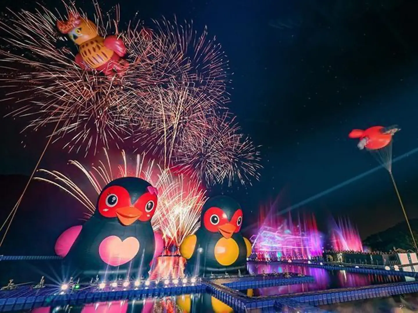 聽說明月高掛下的紅面鴨能施展一種『幸福魔 咒』,這個魔咒透過煙花綻放在夜空中,盛大 又華麗,散播滿滿的好運與幸福給現場所有的 人哦~趕快來迎接紅面鴨的祝福吧!